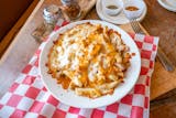 Melted American cheese and chopped crispy bacon.served with fries